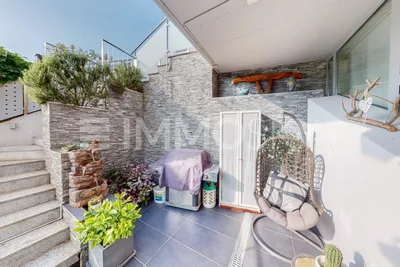 Cette maison remarquable à Torricella offre la flexibilité de deux appartements indépendants ou peut être réunie en une résidence spacieuse sur trois niveaux.
